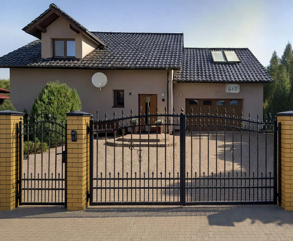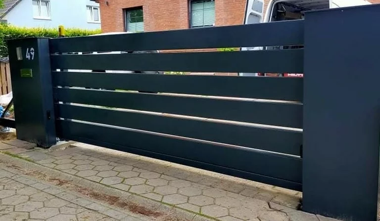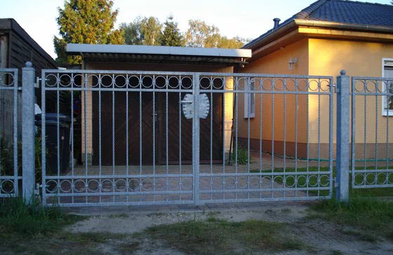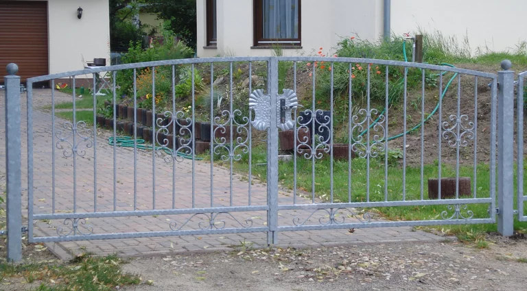Ein Einfahrtstor – ob als Flügeltor oder Schiebetor – wird passend zum Zaun gefertigt. Form, Farbe und Material sind individuell wählbar und sorgen für ein stimmiges Gesamtbild von Zaun und Tor.
